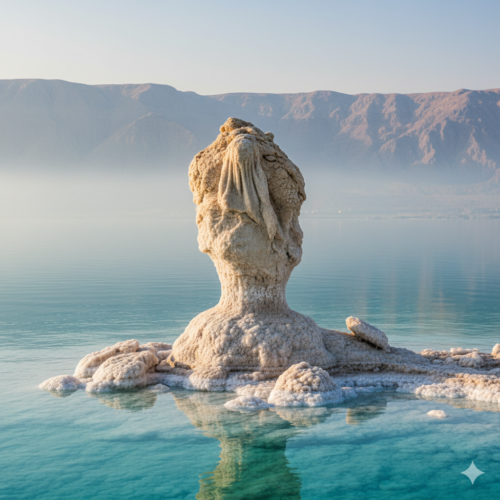 "성지순례 사진으로 마주한 소금기둥은 단순한 암석이 아니었습니다. 황량한 광야에 홀로 선 그 기묘한 형상은, 마치 '세상 미련이 너를 이렇게 굳게 만들 수 있다'는 하나님의 엄중한 경고처럼 다가왔습니다. 그 서늘한 전율 앞에서, 저는 비로소 과거의 후회와 세상에 둔 헛된 미련을 내려놓을 용기를 얻었습니다."